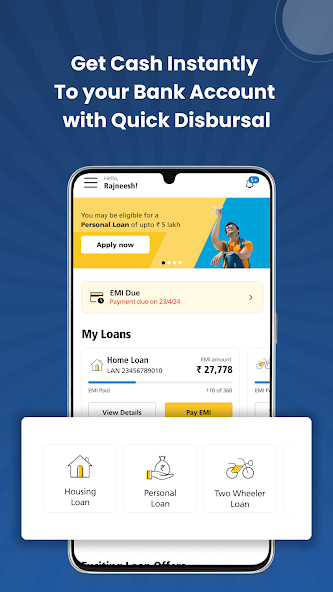 Once approved, the loan amount is transferred directly to your account.